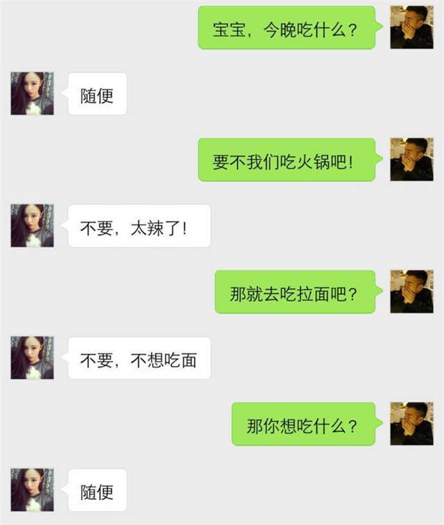 很多兄弟會遇到這樣一種情況,不管是吃飯還是買東西,問女生的時候,女生老說“隨便”,但當(dāng)我們做出選擇后,往往又會遭到女生的埋怨,這種頭疼的情況,我相信很多兄弟都不知道如何應(yīng)對?