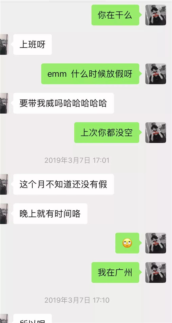 再次聊天已是春節后的三月份,我記得那時間段是我在廣州最火熱的夜場,喝到了凌晨五六點,被身旁的女伴帶回家之后的事。