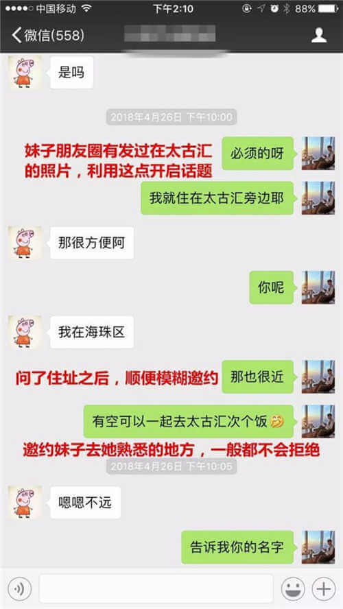 兄弟們可以通過(guò)這個(gè)案例,學(xué)會(huì)和妹子應(yīng)該聊什么樣的話題,如何順勢(shì)升級(jí)關(guān)系,再如何正確的邀約妹子。