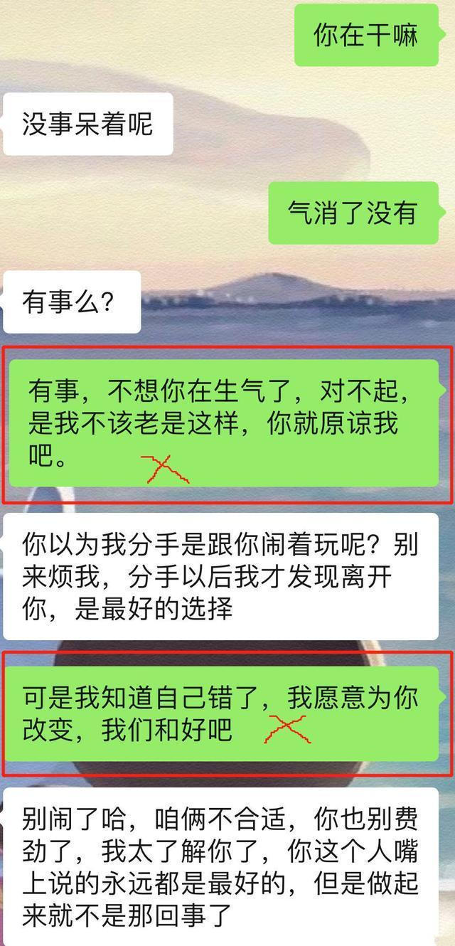 你不道歉還好,但凡是道歉的話說出口,對(duì)方更加言辭激烈,并且會(huì)斬釘截鐵的告訴你,“我們不合適,離開你我感覺自己才是解脫的”“我覺得沒有你生活非常好”“你說什么都沒有用,我是不會(huì)選擇你的,別白費(fèi)力氣了”。